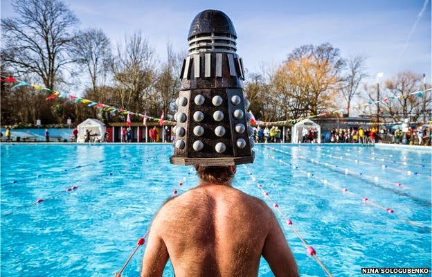 If you've been scraping ice off your car for the last couple of mornings, you'll know it's pretty cold outside at the moment. And today the water in the Lido was 3.9 degrees. Tooting Bec Lido will be even colder because it's a larger expanse of water and it's surrounded by trees. So wish us luck for the Saturday 'races'. I'll post some photos. And I'll see if I can get a photo of the dalek floating across the water.